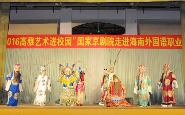 10月12日晚上,由教育部、文化部、財(cái)政部主辦,海南省教育廳、中國國家京劇院以及我院承辦的“2016年高雅藝術(shù)進(jìn)校園”國家京劇院專場(chǎng)演出在我院體藝館火熱上演,一批京劇名家為我院師生獻(xiàn)演經(jīng)典傳統(tǒng)京劇《對(duì)花槍》。海南省教育廳體藝處、文昌市教育局領(lǐng)導(dǎo),學(xué)院領(lǐng)導(dǎo)陳禮民書記、崔昌華副書記、楊學(xué)前副院長與我院全體師生一同觀看演出。