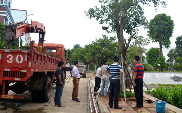 對被連根拔起的大樹實施搶救