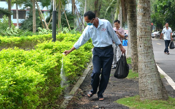 對校園內(nèi)校道排水溝、垃圾桶周邊等區(qū)域進行防疫消殺