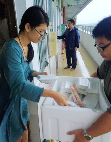 “3個(gè)小時(shí),4000多份盒飯!”對(duì)于學(xué)院食堂的廚子們來說,這樣緊急的工作也許是他們廚子生涯中的第一次。由于強(qiáng)臺(tái)風(fēng)“莎莉嘉”移動(dòng)速度較慢,登陸時(shí)間較長,使得學(xué)生面臨著“饑荒”問題??吹竭@種情景,堅(jiān)守防風(fēng)一線的學(xué)院領(lǐng)導(dǎo)果斷“下令”,通知食堂在3個(gè)小時(shí)內(nèi)做出4000多份盒飯,由系部負(fù)責(zé)同志、教師、輔導(dǎo)員逐間宿舍為學(xué)生送去。