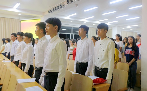 開班儀式上,新加入中國(guó)共產(chǎn)黨的同學(xué)們面向黨旗宣誓,做出他們?nèi)松凶钹嵵氐某兄Z。此外,學(xué)員代表分別做了表態(tài)發(fā)言,表明了入黨的決心。