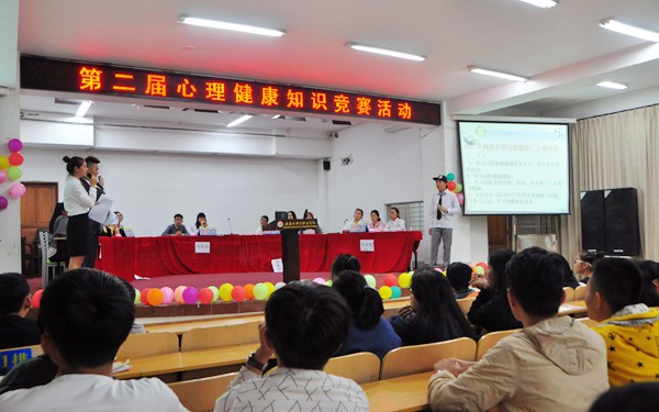 11月30日晚,我院在圖書館多功能報告廳舉行第二屆大學(xué)生心理健康知識競賽活動,來自各系部的隊伍參加了此次競賽。此次競賽設(shè)置了必答題、輪答題、團隊搶答題和臺下個人搶答題四個環(huán)節(jié),由淺及深多個層次考驗我院大學(xué)生心理健康素養(yǎng)。