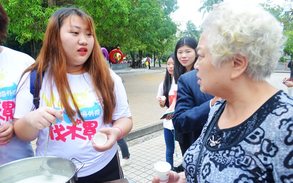 活動期間,師生們身穿日本、韓國、泰國等國的民族服裝,向群眾展示獨特的東盟文化,不僅與在場的群眾熱切交流、外語互動,讓他們了解世界上多種語言的不同特點,同時還通過展板、海報等形式介紹文萊、印度尼西亞、越南、老撾等國家的政治、經(jīng)濟基本情況以及風(fēng)俗習(xí)慣,向群眾們解讀和傳播東盟國家文化。此外,師生們還準備了泰國甜品——西米露,提供給現(xiàn)場群眾品嘗,傳播泰國飲食文化。
