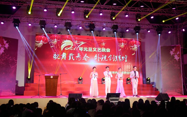 為迎接新的一年的都來(lái),激勵(lì)全校師生在來(lái)年取得更好的成績(jī),滿懷著喜悅的心情,12月29日晚,我院在操場(chǎng)舉辦了“歌舞載青春、外院創(chuàng)輝煌”2017年元旦文藝晚會(huì)。在家的學(xué)院領(lǐng)導(dǎo)黨委書(shū)記陳禮民,院長(zhǎng)李渝鳳,黨委副書(shū)記、紀(jì)委書(shū)記崔昌華與全院師生共襄盛舉,迎接充滿祝福與美好愿望的2017年。
