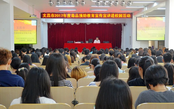 2月22日下午,由文昌市禁毒辦主辦、文城鎮(zhèn)政府、文昌市教育局以及我院聯(lián)合舉辦的文昌市2017年度毒品預(yù)防教育宣傳宣講活動在我院圖書館多功能報告廳舉行。海南省高校禁毒聯(lián)盟主席汪騰老師受邀蒞臨現(xiàn)場,為我院師生進行毒品預(yù)防知識宣講。學(xué)生處負(fù)責(zé)人張政主持宣講活動。