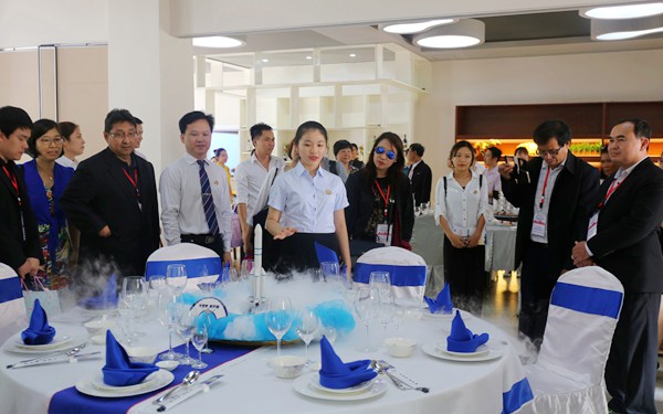 隨后,訪華團(tuán)一行實(shí)地參觀了我院酒店綜合實(shí)訓(xùn)室等教學(xué)實(shí)訓(xùn)場(chǎng)所,參加了我院各語(yǔ)種專業(yè)學(xué)生組織的各國(guó)文化尤其是東南亞國(guó)家文化的展示活動(dòng),直觀感受了我院濃郁的國(guó)際化辦學(xué)氛圍及景色怡人的校容校貌。他們紛紛表示,我院的建設(shè)發(fā)展令人印象深刻,希望通過(guò)此次訪問(wèn),能夠開(kāi)啟雙方合作的大門,不斷增進(jìn)了解、形成共識(shí),以一己之力促進(jìn)社會(huì)經(jīng)濟(jì)發(fā)展,深化雙方人文交流。