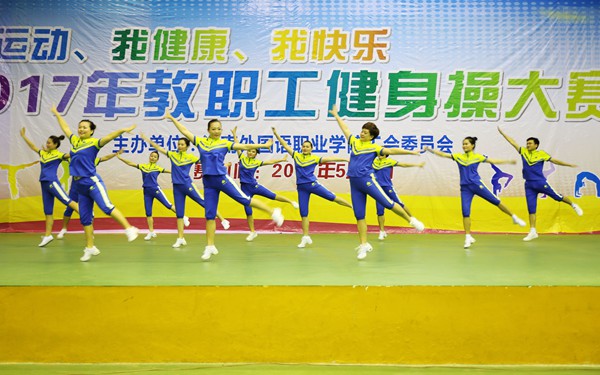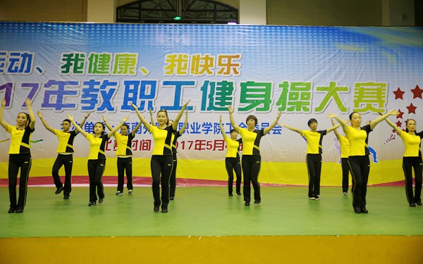 為豐富教職工文化生活,全面落實(shí)全民健身計(jì)劃,深入推進(jìn)我院的陽光體育活動,積極樹立“我運(yùn)動、我健康、我快樂”的健身理念,5月4日晚,我院在體藝館舉辦2017年教職工健身操大賽,來自各部門、系部的8支隊(duì)伍齊聚一臺,競技風(fēng)采。學(xué)院領(lǐng)導(dǎo)陳禮民書記、崔昌華副書記、周運(yùn)詩副院長、楊學(xué)前副院長到場觀看比賽。