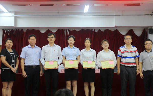 學(xué)院團委主要負責(zé)人張桓桓宣讀了《關(guān)于表彰海南外國語職業(yè)學(xué)院先進集體和先進個人的決定》(海外職院團〔2017〕15號)文件,大會對應(yīng)用英語系團總支、西語系團總支等2個團總支,13(11)班團支部等10個團支部,鄭雅芳等50名優(yōu)秀共青團干部,吳楚楚等100名優(yōu)秀共青團員予以表彰,號召全院各級團組織、廣大團員青年以先進為榜樣,努力踐行社會主義核心價值觀,認真開展“學(xué)習(xí)總書記講話,做合格共青團員”教育實踐活動,團結(jié)拼搏,銳意進取,為把我院共青團工作推上新的臺階而不懈努力。在場領(lǐng)導(dǎo)分別為“五四紅旗團總支”、“五四紅旗團支部”、“優(yōu)秀共青團干部”、“優(yōu)秀共青團員”等受表彰的先進集體和先進個人代表頒發(fā)獎牌和榮譽證書。