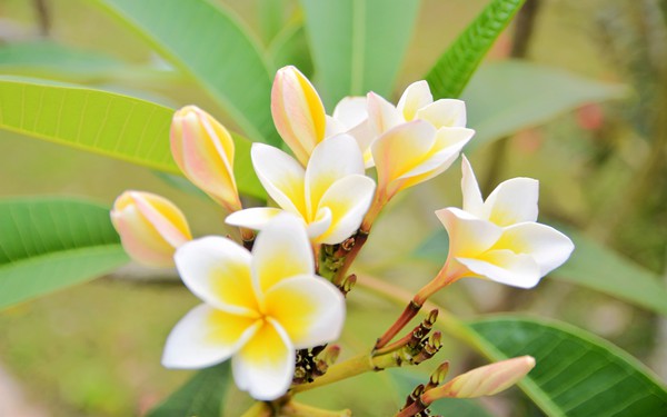 清新淡雅的緬梔子輕輕的掛在枝頭,向著太陽(yáng),孕育著希望。