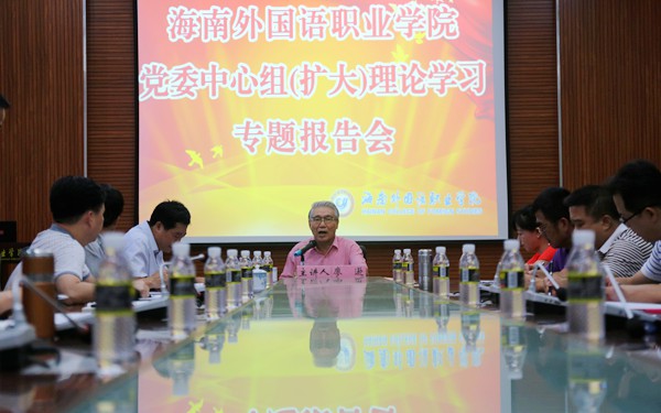 根據(jù)省委的安排部署,6月6日下午,我院黨委學(xué)習(xí)中心組(擴(kuò)大)理論學(xué)習(xí)會暨學(xué)習(xí)宣傳貫徹省第七次黨代會精神專題宣講報(bào)告會在綜合樓7樓第一會議室舉行。國務(wù)院特殊津貼專家、省老教授協(xié)會首屆理事會會長廖遜教授應(yīng)邀作海南省第七次黨代會精神專題學(xué)習(xí)輔導(dǎo)報(bào)告。在家的學(xué)院領(lǐng)導(dǎo)陳禮民書記、周運(yùn)詩副院長、楊學(xué)前副院長出席報(bào)告會。報(bào)告會由陳禮民書記主持。