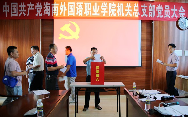 大會提請通過了《中共海南外國語職業(yè)學(xué)院機(jī)關(guān)總支部黨員大會選舉辦法(草案)》、候選人名單、監(jiān)票人、計(jì)票人名單。根據(jù)黨章規(guī)定及依照大會換屆選舉程序,參會全體黨員以無記名投票的方式,選舉產(chǎn)生了新一屆機(jī)關(guān)總支部委員會。