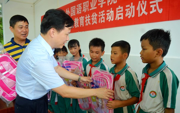 精準(zhǔn)扶貧,教育先行。作為一所外語(yǔ)類公辦高校,我院一直以來(lái)重視發(fā)揮自身資源和優(yōu)勢(shì),發(fā)揮教育扶貧作用,積極開(kāi)展全方位的教育精準(zhǔn)扶貧,包括:積極向祖坡村的村民及其小孩宣傳各項(xiàng)資助政策,使國(guó)家、省市和學(xué)院各類資助政策深入他們心中,為開(kāi)展教育精準(zhǔn)扶貧工作奠定基礎(chǔ);全方位拓寬資助渠道,創(chuàng)新資助方法,切實(shí)將國(guó)家、省市各類資助政策落實(shí)好;對(duì)村里家庭貧困學(xué)生來(lái)我院就讀實(shí)行“二免一補(bǔ)一助一導(dǎo)一就”政策,即免學(xué)費(fèi)、免住宿費(fèi),并每月提供450元的生活補(bǔ)助、提供500元的勤工助學(xué)崗位,安排一名成長(zhǎng)導(dǎo)師,扶持學(xué)生創(chuàng)業(yè)就業(yè),最終實(shí)現(xiàn)一人就業(yè),全家脫貧的目標(biāo);給祖坡村委和祖坡小學(xué)贈(zèng)送有關(guān)科學(xué)種植 、養(yǎng)殖、病蟲(chóng)害防治和小學(xué)生讀物、作文寫(xiě)作等方面書(shū)籍;為祖坡小學(xué)新的教學(xué)大樓配套配置教學(xué)設(shè)備,給該校配置電腦室一間(配置15臺(tái)新電腦,配套的桌椅、投影儀、電腦教學(xué)操作臺(tái)及窗簾等);全面排查,建立建檔立卡家庭經(jīng)濟(jì)困難學(xué)生信息檔案,統(tǒng)籌安排資助指標(biāo),確保建檔立卡家庭經(jīng)濟(jì)困難學(xué)生資助全覆蓋;建立建檔立卡家庭經(jīng)濟(jì)困難學(xué)生成長(zhǎng)關(guān)愛(ài)體系,為建檔立卡家庭經(jīng)濟(jì)困難學(xué)生安排幫扶教師建立“一對(duì)一”或“一對(duì)多”的學(xué)生成長(zhǎng)關(guān)愛(ài)體系,幫扶教師務(wù)必及時(shí)了解學(xué)生思想動(dòng)態(tài)、學(xué)習(xí)生活、受資助等情況,及時(shí)幫助解決困難,促進(jìn)學(xué)生成長(zhǎng)成才;同時(shí)還計(jì)劃選派優(yōu)秀教師和學(xué)生到祖坡村中心小學(xué)指導(dǎo)教學(xué)、選派英語(yǔ)教育專業(yè)優(yōu)秀畢業(yè)生頂崗實(shí)踐、選派學(xué)生志愿者開(kāi)展文明禮儀主題志愿幫扶活動(dòng)、幫助小學(xué)加強(qiáng)師資培訓(xùn)等。