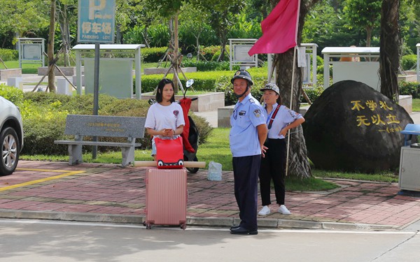父母手中大大小小的行李,承載著滿滿的赤裸裸的愛與不舍,心中所想無法言語,眼神中流露出不舍與愛護,萬千思緒交織在一起??墒?,當學姐學長們接過新生們手中的行李,給以一個堅定的眼神,一個親切的微笑,一句如海風般細膩的聲音:“叔叔阿姨,我來提”,便化解了這些“新人”心中的不安,更讓他們那顆躁動的心,平靜了些許。