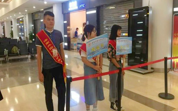 在機場、火車站、汽車站迎接新生的志愿者們