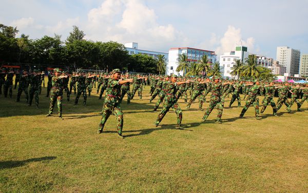 9月23日下午,我院2017級(jí)新生軍訓(xùn)總結(jié)大會(huì)在田徑運(yùn)動(dòng)場(chǎng)舉行。我院黨委書(shū)記陳禮民,黨委副書(shū)記、紀(jì)委書(shū)記徐暢,副院長(zhǎng)楊學(xué)前,文昌市公安邊防支隊(duì)副隊(duì)長(zhǎng)阮江峻以及文昌市人民武裝部部長(zhǎng)董寧海等出席大會(huì)。我院各部門(mén)負(fù)責(zé)人、全體承訓(xùn)官兵、全體參訓(xùn)新生等參加大會(huì)。楊學(xué)前副院長(zhǎng)主持大會(huì)。