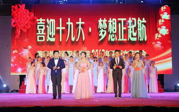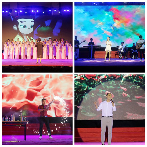 開(kāi)學(xué)典禮結(jié)束后,隨即進(jìn)行迎新文藝表演。學(xué)院合唱團(tuán)合唱《想你的365天》開(kāi)啟晚會(huì)序幕。工裝禮儀展示的《炫動(dòng)青春?點(diǎn)燃?jí)粝搿芬詺g快的步伐加上富有節(jié)奏感的背景音樂(lè),讓現(xiàn)場(chǎng)的氣氛馬上活躍起來(lái)。歌曲《相親相愛(ài)》更把觀眾的情緒推向高潮,音樂(lè)已止掌聲未停。為展示海南獨(dú)特魅力,舞蹈《海南美美噠》以歡快又柔美的形式,將一個(gè)陽(yáng)光島、健康島、國(guó)際旅游島帶到我們眼前。一首《歌曲串燒》唱出了不同風(fēng)格的音樂(lè),讓同學(xué)們仿佛看到了音符在五線(xiàn)譜上跳動(dòng)時(shí)的嫚姿?!坝描F錘砸碎黑暗,用鐮刀收割光明”,配樂(lè)朗誦《青春中國(guó)》帶給同學(xué)們一種震撼,讓同學(xué)們不禁感慨不同時(shí)期青年同學(xué)一樣的愛(ài)國(guó)情懷。舞蹈《海上升明月》通過(guò)舞蹈與舞臺(tái)特效的結(jié)合,向同學(xué)們展示了文昌的航天文化,提高了同學(xué)們對(duì)航天的認(rèn)識(shí)和了解。在二重唱《祖國(guó)萬(wàn)歲》歌聲中,同學(xué)們仿佛看到了五星紅旗在迎風(fēng)飄揚(yáng),看到了一幅祖國(guó)繁榮昌盛的畫(huà)卷。終場(chǎng)舞蹈《起航》給予每位同學(xué)希望,希望同學(xué)們用青春楊帆,讓夢(mèng)想起航。