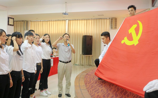 會(huì)議期間,參訓(xùn)學(xué)員代表作了表態(tài)發(fā)言。新加入中國(guó)共產(chǎn)黨的同學(xué)們面向黨旗宣誓,做出他們?nèi)松凶钹嵵氐某兄Z。組織人事處符婕老師就培訓(xùn)班的課程內(nèi)容、時(shí)間安排等具體事項(xiàng)向?qū)W員們做出強(qiáng)調(diào)和說(shuō)明。