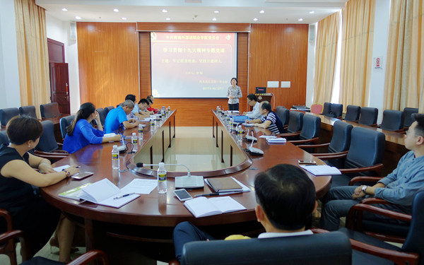 10月27日下午,學(xué)院黨委副書(shū)記、紀(jì)委書(shū)記徐暢在綜合樓7樓第二會(huì)議室為黨辦、學(xué)生處、團(tuán)委、工會(huì)等部門的教職工黨員上了一堂專題黨課,結(jié)合十九大精神,談立德樹(shù)人的意義及如何更好落實(shí)立德樹(shù)人的根本任務(wù)。