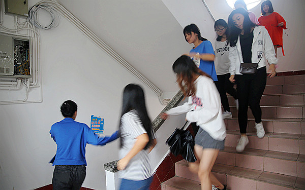在消防演練疏散現(xiàn)場(chǎng),我院各系部輔導(dǎo)員依照演練部署,分別各自抵達(dá)所部署中個(gè)人所管轄的樓層整裝待發(fā),等待發(fā)令員發(fā)號(hào)施令。隨著一聲令下,我院學(xué)生立即響應(yīng),從各自的寢室緊張有序彎腰半伏的跑出,各樓層輔導(dǎo)員不斷地進(jìn)行手勢(shì)以及語(yǔ)言的疏通指導(dǎo)。短短時(shí)間之內(nèi),我院學(xué)生在輔導(dǎo)員的指導(dǎo)下迅速、有序、安全撤離“模擬火災(zāi)宿舍樓”,抵達(dá)安全空曠地帶。