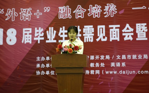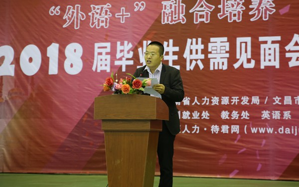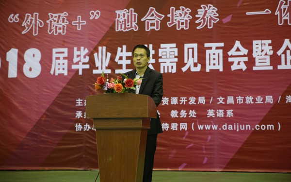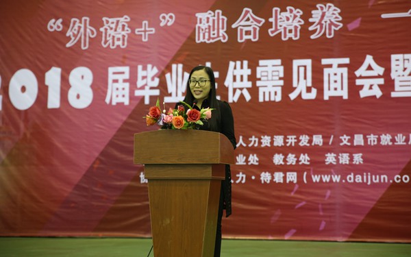 開幕式上,周運詩副院長代表學院致辭,他指出,學院緊跟國家大力發(fā)展職業(yè)教育步伐,緊抓國家“一帶一路”、海南國際旅游島和文昌航天城建設(shè)機遇,全力加強內(nèi)涵建設(shè),深化教育改革,不斷提升畢業(yè)生就業(yè)的適應(yīng)力和競爭力,此外還堅持“外語+”融合培養(yǎng)模式,積極通過省市共建學院、學院理事會、國際聯(lián)合辦學、校際協(xié)同辦學、校企合作辦學,構(gòu)建多層次聯(lián)合辦學與人才培養(yǎng)體系,大力挖掘國內(nèi)外優(yōu)質(zhì)職業(yè)教育資源,構(gòu)建一體化實訓(xùn)就業(yè)模式,不斷面向人才市場、貼近企業(yè)辦學,把校企合作、工學結(jié)合作為人才培養(yǎng)模式改革的重要切入點,不斷推進學產(chǎn)對接和實踐教學平臺建設(shè),并取得了顯著成效。通過舉辦此次活動,希望為廣大畢業(yè)生提供實現(xiàn)職業(yè)夢想的平臺,并加強與企業(yè)的合作交流,進一步提升我院的就業(yè)創(chuàng)業(yè)工作水平,為海南國際旅游島和文昌航天城建設(shè)做出更大的貢獻。
