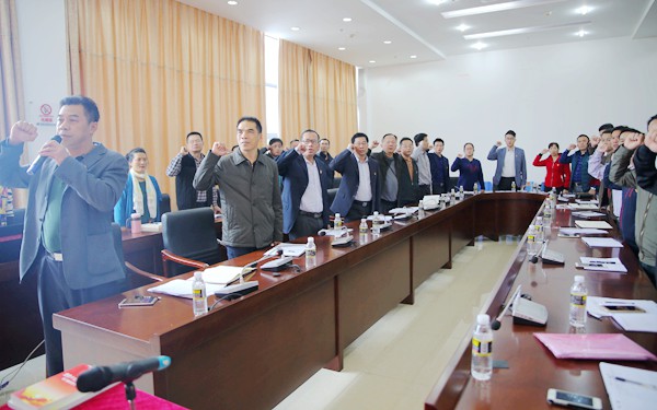 開班儀式前,在梁松領誓下,培訓班全體學員重溫入黨誓詞。