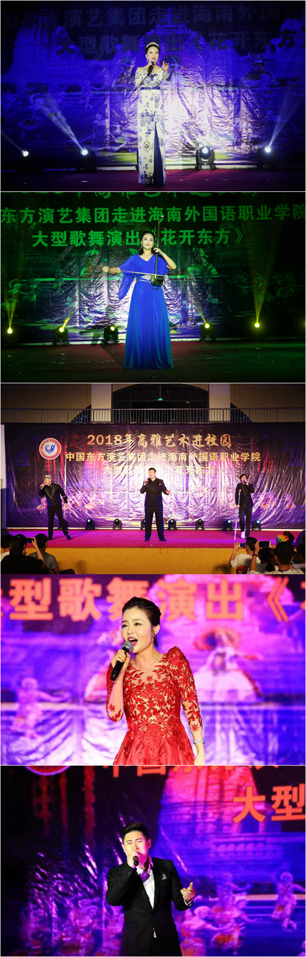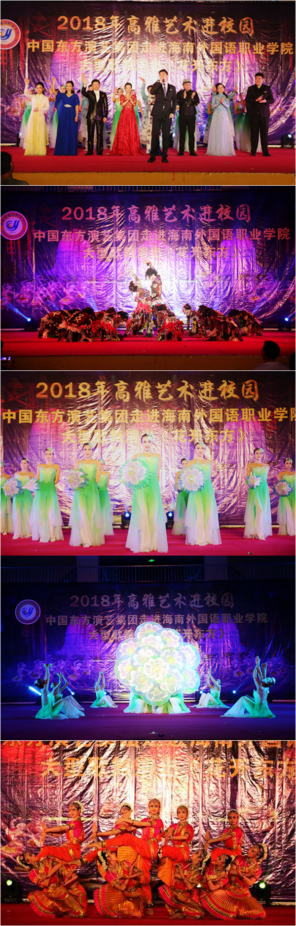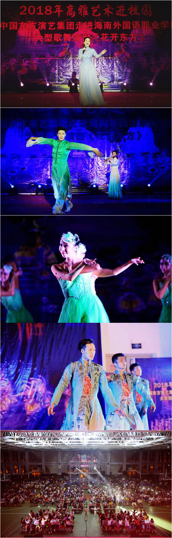 4月28日晚,2018年高雅藝術(shù)進校園中國東方演藝集團大型歌舞演出《花開東方》在我院體藝館精彩開演。學(xué)院領(lǐng)導(dǎo)陳禮民書記、徐暢副書記、周運詩副院長,黨委委員梁松主任(部長),與千名師生一同觀看了演出。