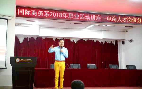 7日,深圳市頭狼電子商務有限公司CEO朱加寶為師生作“電商人才崗位分析及成才路徑”專題講座,從電商行業(yè)現(xiàn)狀、跨境電商人才需求、電商員工培養(yǎng)模式、行業(yè)目前的發(fā)展狀況及市場開拓前景等方面,為師生作詳盡分析。他分享了目前在其公司工作的畢業(yè)生情況,就跨境電商招聘人才的條件,工作崗位及其能力要求,指導大家如何去適應用人單位與大學生的就業(yè)矛盾,鼓勵畢業(yè)生擁有敢于吃苦的精神與永不言敗的毅力,在學好專業(yè)知識的同時做好自己的職業(yè)生涯規(guī)劃,勇于走出去拓寬自己的視野,發(fā)掘自己的潛力,為將來就業(yè)與創(chuàng)業(yè)奠定堅實的基礎。同時,他也向同學們拋出“橄欖枝”,希望同學們能加入自己的團隊,與他們一起實現(xiàn)夢想。
