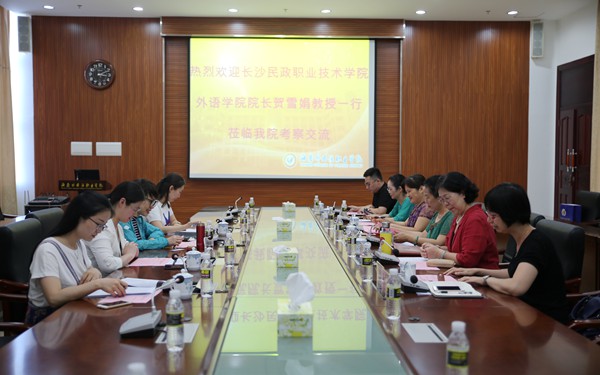 5月11日下午,長(zhǎng)沙民政職業(yè)技術(shù)學(xué)院外語(yǔ)學(xué)院院長(zhǎng)賀雪娟教授一行4人蒞臨我院訪問(wèn)交流。我院涉外職業(yè)教育研究中心研究員景志華,省應(yīng)用英語(yǔ)日語(yǔ)研究會(huì)主任、我院特聘教授劉麗艷,教務(wù)處負(fù)責(zé)人吳慧華,英語(yǔ)系主要負(fù)責(zé)人張清萍等接待了來(lái)訪者一行。雙方于綜合樓7樓第一會(huì)議室就少兒師資專(zhuān)業(yè)建設(shè)等話(huà)題開(kāi)展座談交流。