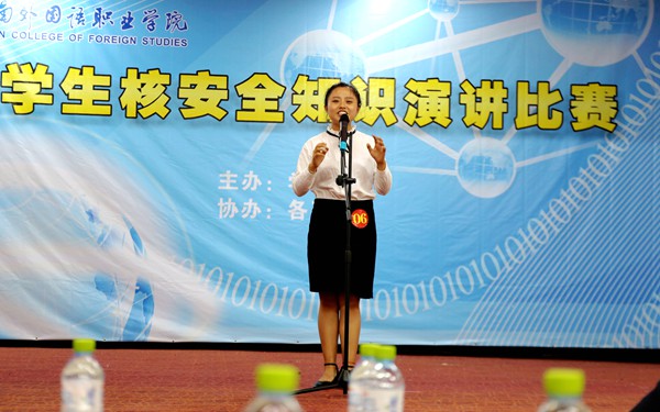 為普及核安全文化知識,提高我院學(xué)生對核安全的認(rèn)識,培養(yǎng)正確的核安全觀,5月30日晚,由學(xué)生處主辦、各系部協(xié)辦的“攜手核安全 共創(chuàng)和諧家園”大學(xué)生核安全知識演講比賽在圖書館多功能報告廳舉辦。各系部選送的8組選手進(jìn)入當(dāng)晚的決賽。學(xué)生處及各系部黨總支部(直屬黨支部)負(fù)責(zé)人,各系部團(tuán)總支負(fù)責(zé)人、輔導(dǎo)員和部分師生共同觀看了比賽。