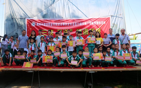 我院對(duì)祖坡村學(xué)生的幫扶遠(yuǎn)不只是提供繼續(xù)教育政策扶持而已。在當(dāng)天的主題教育幫扶活動(dòng)現(xiàn)場(chǎng),還舉行了我院教育幫扶志愿者、祖坡小學(xué)優(yōu)秀少先隊(duì)員與26位貧困家庭學(xué)生“結(jié)對(duì)子”幫扶啟動(dòng)儀式,我院正在祖坡小學(xué)實(shí)習(xí)的6名優(yōu)秀英語(yǔ)專業(yè)學(xué)生,以這種正式的形式與孩子們