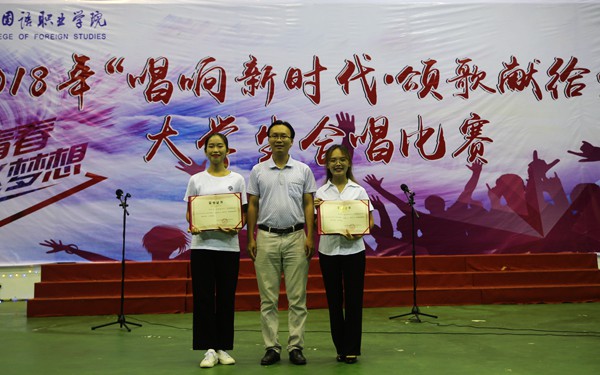 據(jù)悉,此次合唱比賽以系部為單位,每個系部自選兩首積極向上的歌曲。通過評委打分,現(xiàn)場評出了比賽的一二三等獎。英語系五年一貫制隊和高職高專隊分別獲得一等獎,人文藝術(shù)系隊、國際商務(wù)系A(chǔ)隊和B隊分別獲得二等獎,西語系隊、東語系隊、旅游系五年一貫制隊和高職高專隊分別獲得三等獎。
