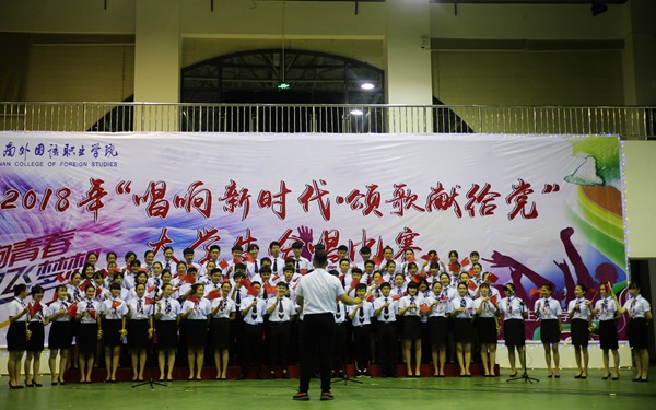 比賽在西語系選送的歌曲《走向復(fù)興》《祖國不會忘記》中拉開帷幕,曲調(diào)昂揚向上,歌曲振奮人心,洋溢著愛國熱情和革命英雄主義和樂觀主義精神,傳遞了中華民族走向民族復(fù)興和期盼國家富強的熱切愿望,向著中華民族偉大復(fù)興光明前景奮進的堅強決心。人文藝術(shù)系演唱曲目為《長江之歌》《青春舞曲》,既有觀賞性又具創(chuàng)意性,有傳統(tǒng)的合唱、領(lǐng)唱、分聲部演唱形式。國際商務(wù)系帶來的《大海啊故鄉(xiāng)》《我和我的祖國》《同一首歌》《國家》等曲目,歌唱著國人對祖國的赤誠和熱愛。旅游系學生身著整潔統(tǒng)一的服裝,整齊有序的隊伍,嘹亮的歌聲唱起《讓我們蕩起雙槳》,《我的中國心》。英語系選送的歌曲《久久不見久久見》《DO RE ME》《在太行山上》為觀眾呈現(xiàn)別樣的風采,展現(xiàn)了詩情畫意的一面?!陡璩鎳氛駣^了民族精神,展現(xiàn)著中華兒女不屈不撓的抗爭精神,以及在黨的帶領(lǐng)下,中華民族自強不息的奮斗歷程。東語系《保衛(wèi)黃河》,《貝加爾湖畔》,學生格調(diào)昂揚向上、節(jié)奏鏗鏘有力,催人奮進。