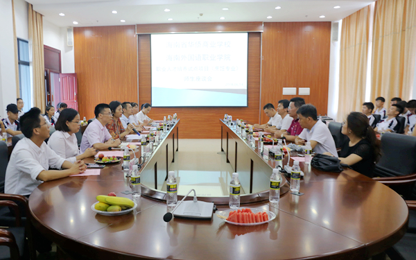 6月14日下午,海南省華僑商業(yè)學(xué)校與我院中高職銜接“3+2”試點(diǎn)項目(烹飪專業(yè))師生座談會在我院綜合樓七樓第二會議室召開,我院黨委副書記、紀(jì)委書記徐暢,海南省華僑商業(yè)學(xué)校校長陳太荀,以及兩校有關(guān)們負(fù)責(zé)人、海南省華僑商業(yè)學(xué)校與我院中高職銜接“3+2”試點(diǎn)項目(烹飪專業(yè))的60名學(xué)生和教師代表參加座談會。