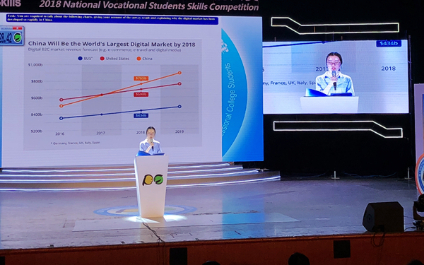 據(jù)悉,全國高職高專實(shí)用英語口語大賽從2004年起已經(jīng)成功舉辦了十四屆,每年吸引全國數(shù)以百萬計(jì)的師生參與,現(xiàn)已成為全國高職高專教育領(lǐng)域的品牌賽事,成為全國高職高專學(xué)生展示英語口語交際綜合能力最高水平的盛會(huì),被譽(yù)為我國職業(yè)教育界的“奧林匹克”,也是全國職業(yè)院校技能大賽高職組唯一的語言類賽項(xiàng)。