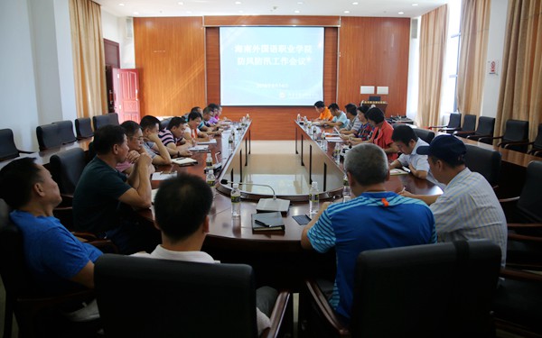 周運(yùn)詩副院長在會上傳達(dá)了上級有關(guān)防風(fēng)工作的文件精神,并對我院具體防風(fēng)措施做了部署,要求各部門要周密部署,明確職責(zé),落實(shí)責(zé)任,將防臺防汛工作落實(shí)到每個職能部門、每個人身上,及時做好臺風(fēng)前的安全隱患排查工作,提前做好必要防風(fēng)物資的貯備和管理;同時各部門工作人員要務(wù)必保持通訊暢通,確保及時高效地處理突發(fā)事件,同時要加強(qiáng)宣傳,提高全院師生的防風(fēng)意識,做到防范于未然。