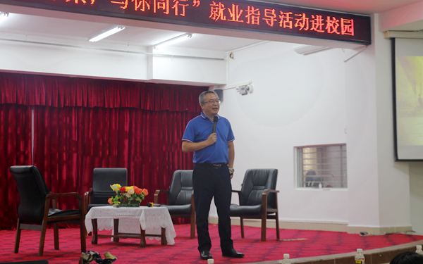 10月23日下午,2018年海南省就業(yè)創(chuàng)業(yè)指導(dǎo)進(jìn)校園“筑夢(mèng)未來(lái),與你同行”主題沙龍活動(dòng)在我院圖書(shū)館多功能報(bào)告廳舉行。海南企業(yè)培訓(xùn)聯(lián)盟秘書(shū)長(zhǎng)、中國(guó)南方航空公司乘務(wù)教員、中國(guó)形象設(shè)計(jì)協(xié)會(huì)注冊(cè)講師、蘇鹽城鷹王貿(mào)易有限公司海南分公司總經(jīng)理黃妮女士,中國(guó)注冊(cè)教練聯(lián)盟秘書(shū)長(zhǎng)、中國(guó)管理科學(xué)研究院學(xué)術(shù)研究型專(zhuān)家、中國(guó)管理培訓(xùn)聯(lián)盟特訓(xùn)講師、海南創(chuàng)業(yè)導(dǎo)師、海南就業(yè)指導(dǎo)老師、中國(guó)高校EDP教育聯(lián)盟講師、海南培豪文化發(fā)展有限公司董事長(zhǎng)廖勇先生應(yīng)邀到校宣講。我院實(shí)訓(xùn)就業(yè)處處長(zhǎng)許環(huán)碧作為對(duì)話(huà)嘉賓參加活動(dòng)?;廴巳肆Y源(海南)股份有限公司創(chuàng)始人林遍地先生,我院2019屆畢業(yè)生學(xué)生代表等參加活動(dòng)。