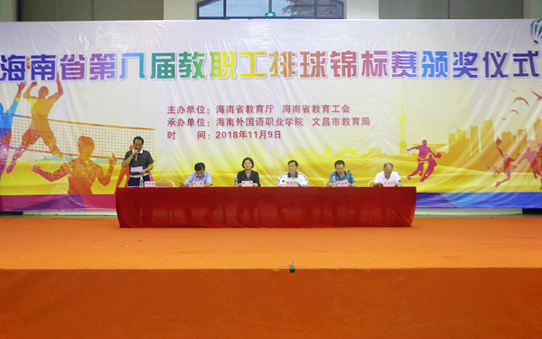 11月9日,由海南省教育廳、海南省教育工會主辦,我院和文昌教育局承辦的海南省第八屆教職工排球錦標賽經(jīng)過5激烈緊張的角逐,在我院體藝館落下帷幕。我院教職工排球隊在本次比賽中喜獲佳績,分別榮獲高校男子組亞軍、高校女子組亞軍的好成績。此外,我院還獲得了“優(yōu)秀組織獎”,以表彰我院在賽事組織上的優(yōu)秀表現(xiàn)。海南省教育廳原副巡視員陳昌偉,我院黨委副書記、紀委書記徐暢,海南省教育工會調(diào)研員朱永國,文昌市教育局局長龍躍等領導出席閉幕式。