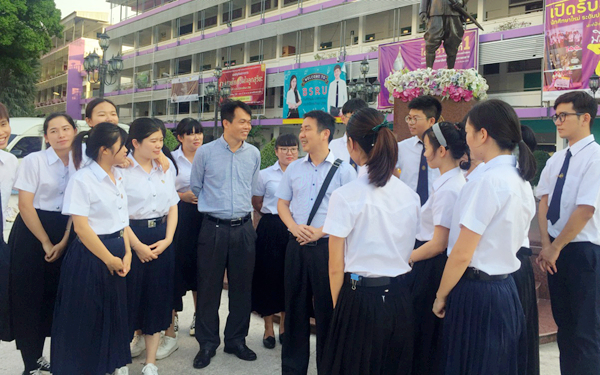 與我校16級(jí)在泰國(guó)學(xué)習(xí)的學(xué)生交談