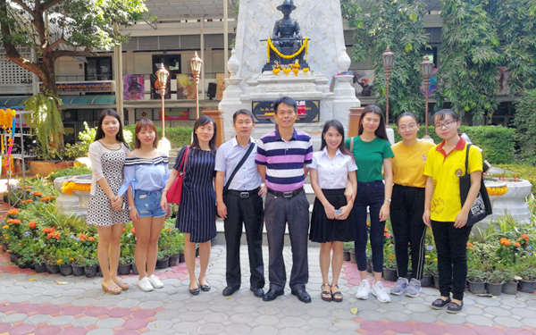 訪問(wèn)期間,我院訪問(wèn)團(tuán)還參觀了泰國(guó)班頌德昭帕亞皇家大學(xué)校園,聆聽(tīng)了泰國(guó)吞武里時(shí)期的輝煌歷史以及班頌德昭帕亞皇家大學(xué)創(chuàng)始人一生的偉大事跡。參觀結(jié)束后,我院訪問(wèn)團(tuán)與我院16級(jí)應(yīng)用泰語(yǔ)專(zhuān)業(yè)學(xué)生會(huì)見(jiàn),進(jìn)入他們的課堂觀摩了他們泰式點(diǎn)心制作課,傾聽(tīng)學(xué)生講解制作點(diǎn)心的過(guò)程,觀看學(xué)生們動(dòng)手能力,感受學(xué)生融入當(dāng)?shù)氐慕虒W(xué)實(shí)踐氛圍。觀摩結(jié)束后,我院訪問(wèn)團(tuán)與我院16級(jí)應(yīng)用泰語(yǔ)專(zhuān)業(yè)學(xué)生進(jìn)行了座談,當(dāng)面了解了我院學(xué)生在泰國(guó)的學(xué)習(xí)及生活真實(shí)情況。學(xué)生都?xì)g心地暢談了他們?cè)谔﹪?guó)的學(xué)習(xí)內(nèi)容、生活感受以及對(duì)未來(lái)的規(guī)劃等。在座談會(huì)上,我院周運(yùn)詩(shī)副院長(zhǎng)對(duì)在泰國(guó)學(xué)習(xí)的學(xué)子們寄托于厚望,希望學(xué)生好好珍惜在泰國(guó)學(xué)習(xí)的機(jī)會(huì),并利用好這段出國(guó)留學(xué)的時(shí)光,打好泰語(yǔ)專(zhuān)業(yè)基礎(chǔ),積累實(shí)習(xí)實(shí)踐經(jīng)驗(yàn),提升自身的綜合能力水平,早日學(xué)成歸國(guó),報(bào)效祖國(guó)。