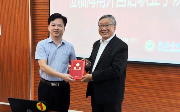 講座開始前,楊學前副院長代表學院對楊保筠教授的到來表示歡迎和感謝,希望廣大教師珍惜此次聆聽講座的機會,虛心學習楊保筠教授圍繞東盟語言人才培養(yǎng)方面提出的寶貴看法和見解,并結合實際,認真思考和研究我院東盟語種專業(yè)建設和人才培養(yǎng)問題,為我院東盟語種專業(yè)改革發(fā)展做出自己更大貢獻。隨后,楊學前副院長還代表學院為楊保筠教授頒發(fā)我院客座教授聘書。