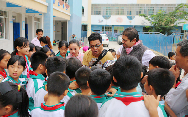 我院外籍教師與祖坡小學學生互動,鼓勵同學們好好學習