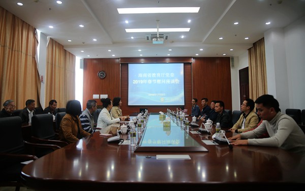 1月22日下午,省教育廳黨委2019年春節(jié)慰問工作座談會(huì)在學(xué)院綜合樓7樓第一會(huì)議室舉行。海南省教育廳黨委委員、考試局局長(zhǎng)杜明娥,省考試局辦公室主任唐電潤,省考試局辦公室副主任黃宏春,學(xué)院黨委副書記、紀(jì)委書記徐暢出席座談會(huì)。
