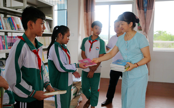 在祖坡小學(xué),李渝鳳院長(zhǎng)一行看望了正在這里支教的我院英語(yǔ)系學(xué)生,并代表學(xué)院向小學(xué)捐贈(zèng)了一批圖書(shū),向同學(xué)們寄予了努力學(xué)習(xí)、不斷充實(shí)精神食糧的殷切希望。