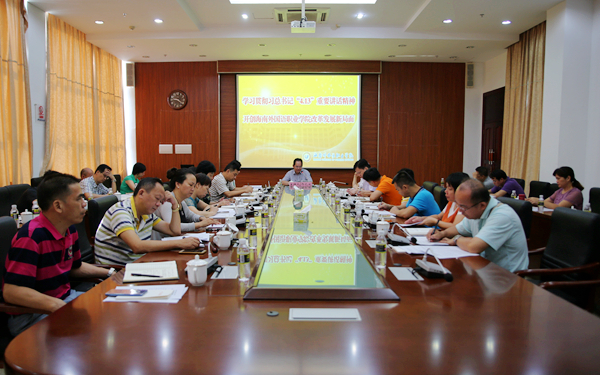 李渝鳳院長(zhǎng)指出,全省教育大會(huì)強(qiáng)調(diào)海南國(guó)際旅游島和自由貿(mào)易區(qū)(港)的建設(shè)需要擴(kuò)大教育開放,提高海南人民外語(yǔ)水平。作為我省外語(yǔ)語(yǔ)種最多、外語(yǔ)專業(yè)最齊的高校,我院要立足海南、輻射全國(guó)、面向國(guó)際,用全省教育大會(huì)精神指引學(xué)院科學(xué)發(fā)展,服務(wù)國(guó)家“一帶一路”以及海南國(guó)際旅游島和自由貿(mào)易區(qū)(港)建設(shè)。一是深化教育改革,繼續(xù)突出“外語(yǔ)+”辦學(xué)特色,對(duì)標(biāo)海南12大重點(diǎn)產(chǎn)業(yè)需求,培養(yǎng)高素質(zhì)涉外人才;二是要持續(xù)加強(qiáng)教育國(guó)際合作與交流,以“一帶一路”共建國(guó)家(地區(qū))為重點(diǎn),打造“留學(xué)海南”品牌。持續(xù)開展多層次聯(lián)合辦學(xué),全面提升辦學(xué)國(guó)際化水平;三是積極把握機(jī)遇,主動(dòng)作為,全面推進(jìn)學(xué)院新一輪改革開放,為海南全民外語(yǔ)提升行動(dòng)計(jì)劃提供智力和人才支撐,培養(yǎng)更多具有國(guó)際視野、跨文化交際能力、熟練運(yùn)用外語(yǔ)的應(yīng)用型人才,為海南國(guó)際旅游島和自由貿(mào)易區(qū)(港)建設(shè)作出新的貢獻(xiàn)。