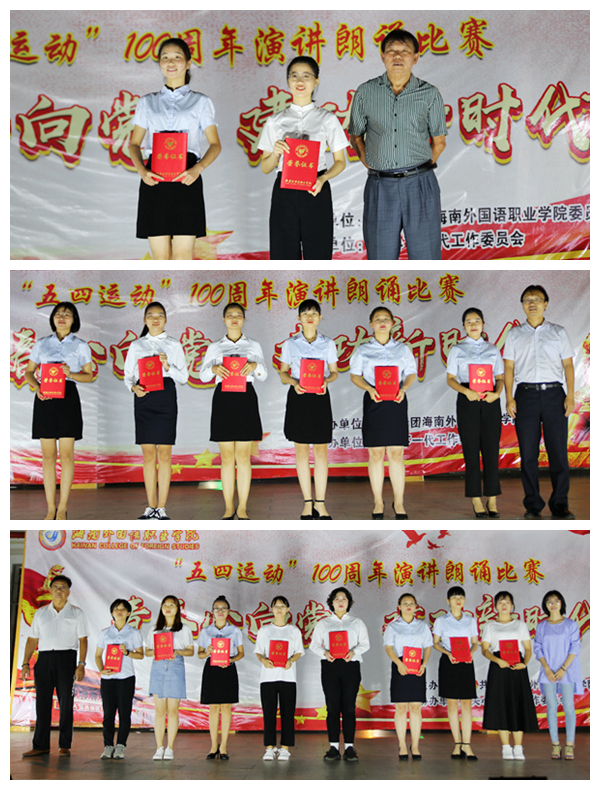 為引導(dǎo)全校青年學(xué)生認(rèn)真貫徹落實(shí)習(xí)近平總書記對(duì)青年的殷切希望,繼承“五四”光榮傳統(tǒng),弘揚(yáng)“五四”愛國精神,展示全校學(xué)生朝氣蓬勃、奮發(fā)進(jìn)取的精神風(fēng)貌,4月24日晚,我院在一號(hào)教學(xué)樓舉辦以“青春心向黨,建功新時(shí)代”為主題的紀(jì)念五四運(yùn)動(dòng)100周年演講朗誦比賽。學(xué)院關(guān)工委韓祝疇主任、莫運(yùn)深副主任,團(tuán)委主要負(fù)責(zé)人張桓桓,旅游系黨總支主要負(fù)責(zé)人林明霞等以及各系部學(xué)生代表觀看比賽,公共教學(xué)部老師擔(dān)任比賽評(píng)委。