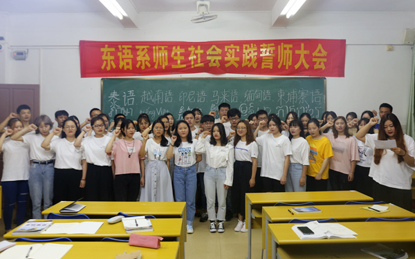 隨后舉行了宣誓儀式,同學(xué)們舉起右手鄭重宣誓:保證完成任務(wù)、做講文明、懂禮貌、遵紀(jì)守法的海外學(xué)子,不辜負學(xué)院領(lǐng)導(dǎo)的期待,以滿滿的收獲向?qū)W院匯報!東語系組織學(xué)生參加社會實踐外出學(xué)習(xí)、交流、調(diào)研,是我院“職業(yè)教育活動周”其中的一項內(nèi)容,不僅是學(xué)生“見世面,擴眼界,提水平”的一個重要渠道,同時對拓寬教學(xué)視野,豐富理論涵養(yǎng),促進專業(yè)發(fā)展有著十分重要的意義。