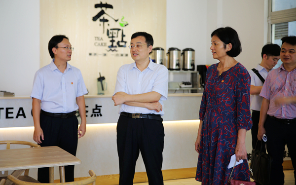 在實地調(diào)研中,蓋文啟書記一行先后參觀我院體藝館、國際語言體驗中心、大學(xué)生創(chuàng)業(yè)孵化基地、食堂等場所。在國際語言體驗中心,蓋文啟書記對中心的建設(shè)連連稱贊;在大學(xué)生創(chuàng)業(yè)孵化基地,不同種類的大學(xué)生創(chuàng)業(yè)項目吸引了調(diào)研組一行的關(guān)注,大家為此展開了熱烈討論,同時他們對我院開放包容的課余活動開展和積極大力支持大學(xué)生創(chuàng)業(yè)行動給予肯定和贊許。