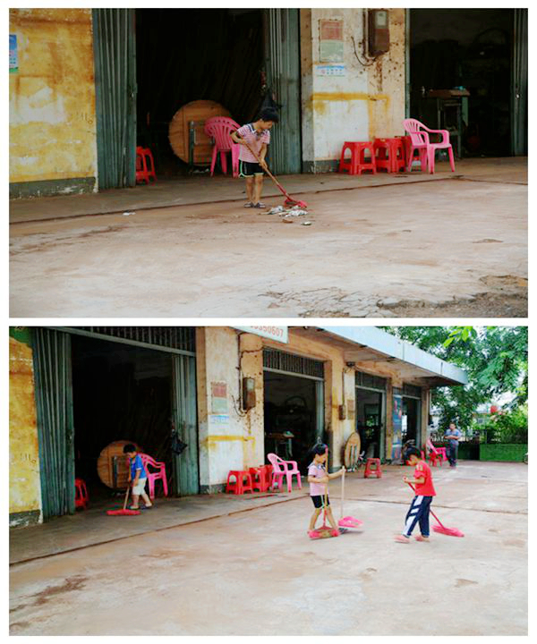 在巡查返途過程中,勸導(dǎo)員在發(fā)現(xiàn)有一家商鋪沒有及時(shí)打掃衛(wèi)生,家人也沒有在家,僅有三位小孩在家時(shí),很耐心并用溫柔的語氣告訴他們保護(hù)環(huán)境的重要性。勸導(dǎo)員走后,從一個(gè)小孩子拿起掃把到三個(gè)小孩拿起了掃把再到最后大人也參與了進(jìn)來,對(duì)自家商鋪門前進(jìn)行了大掃除。地面從原來的遍地垃圾到如圖看到的干凈整潔,讓我院“雙創(chuàng)”工作勸導(dǎo)員都不禁對(duì)著他們豎起來大拇指。