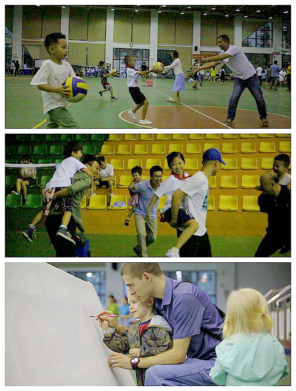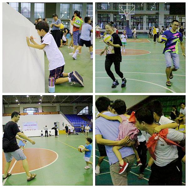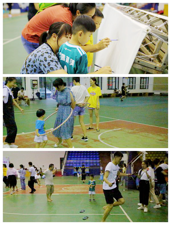 本次活動(dòng)開展形式豐富多樣,共設(shè)立了“走進(jìn)夢(mèng)想畫廊”、“螃蟹走”、“捉尾巴”、“兩人三足”、“親子跳繩”、“母子(父子)接力”六項(xiàng)游戲項(xiàng)目。每項(xiàng)比賽都要求孩子們和父母親密協(xié)作、共同努力才能獲得獎(jiǎng)品。游戲現(xiàn)場(chǎng)充滿孩子們的笑聲和尖叫聲,畫布上展現(xiàn)了孩子們的世界,天真浪漫的想法躍然紙上,父母的幫助讓孩子們的畫更加生動(dòng)可愛;也有父母與孩子們的默契配合,互相競(jìng)爭(zhēng)獎(jiǎng)品;“捉尾巴”游戲中,父母?jìng)儽成虾⒆?,互相追逐,有時(shí)兩兩圍攻,有時(shí)意在沛公,緊張激烈引得現(xiàn)場(chǎng)尖叫不斷;接力賽中,孩子與父母都展示出矯健的身姿,努力奔跑的樣子特別認(rèn)真。