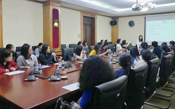 訪問(wèn)期間,徐暢副書記一行到東方學(xué)系舉辦留學(xué)海南外國(guó)語(yǔ)職業(yè)學(xué)院的宣講會(huì),參會(huì)的有東方學(xué)系Nguyen Thi Ngoc Hoa主任、東方學(xué)系漢語(yǔ)教師,以及東方學(xué)系漢語(yǔ)專業(yè)的部分大三學(xué)生。宣講會(huì)由我院黎凝老師主講,主要內(nèi)容包括學(xué)院簡(jiǎn)介、留學(xué)生情況、教學(xué)條件、住宿條件、招生條件、獎(jiǎng)學(xué)金政策等。同學(xué)們都聽(tīng)得很認(rèn)真。會(huì)上還播放了我院留學(xué)生錄制的宣傳視頻。提問(wèn)環(huán)節(jié),徐暢副書記和黎凝老師一一解答同學(xué)們提出的問(wèn)題,并歡迎他們到我院留學(xué),希望以后有機(jī)會(huì)能在海南文昌再會(huì)。
